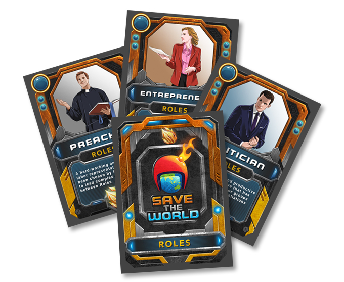Save the World is run by a Master of Disaster, who reads the cards, keeps the time, and comes up with answers to questions from players. The MoD is also a player.