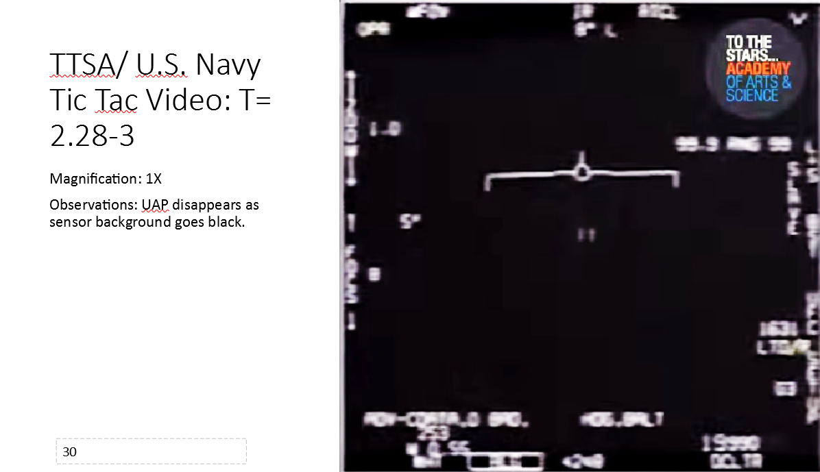Before diving into the technical analysis of the Tic Tac shaped Nimitz UAP, aka FLIR1, here are some of Boyd’s forensic findings:
