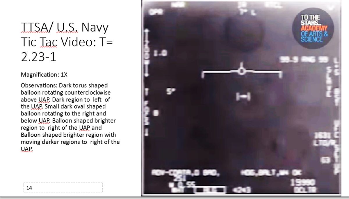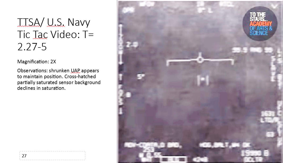Engineer, peer-reviewed author, and Lyft driver Michael Boyd has prepared an independent forensic analysis of the To The Stars Academy of Arts & Science (TTSA) video depicting Unidentified Aerial Phenomena (UAP) taken off the coast of San Diego by US Navy pilots from the USS Nimitz in 2004.